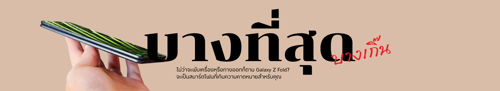 เชิญพบกับ ฺ Galaxy Z Fold7 พบกับดีไซน์ที่เป็นนวัตกรรมที่สุดของเรา ที่ออกแบบขึ้นมาใหม่ เพื่อให้เป็น Fold ที่บางและเบาที่สุด เท่าที่เราเคยมีมา ด้วย หน้าจอขนาดใหญ่ ทั้งภายในและภายนอกที่จะทำให้คุณรับชมได้ถึงโลกแห่งงานฝีมืออันไร้ที่ติโฉมใหม่แล้ว สมาร์ตโฟนเครื่องนี้จึงเป็นประสบการณ์ระดับ Ultra ที่รอให้คุณพลิกเปิด หน้าจอที่ใหญ่ที่สุดในสมาร์ทโฟน Galaxy ไม่ว่าจะพับเครื่องหรือกางออกก็ตาม Galaxy Z Fold7 จะเป็นสมาร์ตโฟนที่เกินความคาดหมายสำหรับคุณ ด้วยหน้าจอด้านนอกขนาด 21:9 ที่ใหญ่กว่าเดิมและรูปลักษณ์ที่ล้ำกว่าเดิม คุณจะสามารถจับถือและพิมพ์ได้ง่ายกว่าเดิม จนคุณสามารถทำสิ่งต่าง ๆ ให้สำเร็จได้อย่างสะดวกสบาย Samsung Galaxy Z Fold 7 มี 3 สีหลักคือ Blue Shadow (น้ำเงิน), Jet Black (ดำ) และ Silver Shadow (เงิน) โดยมีสีพิเศษ Mint (มิ้นต์) สำหรับสั่งซื้อออนไลน์เฉพาะที่เว็บไซต์ Samsung เท่านั้น และมีรุ่น FE สีดำกับขาวด้วย.